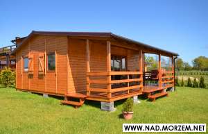 Domki są ocieplone, ich powierzchnia wynosi 49 m2 (33m2 domek plus 16m2 tarasu).